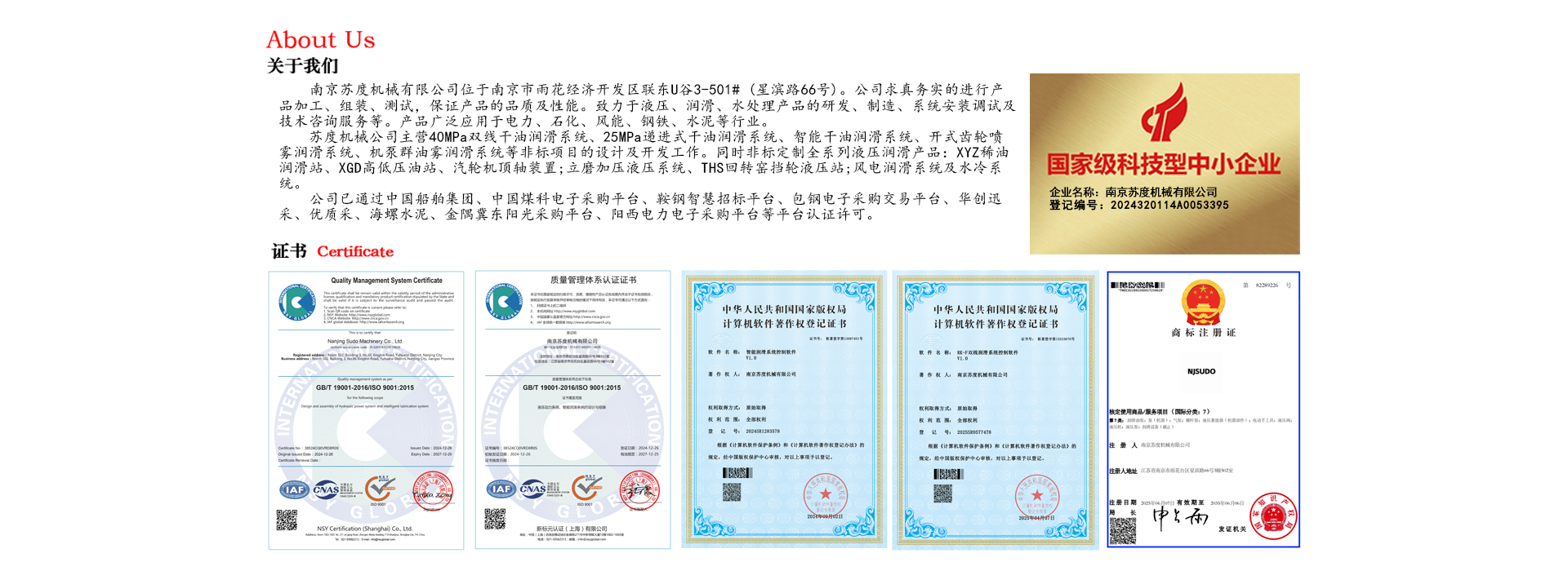 南京蘇度機械有限公司位于南京市雨花經(jīng)濟開發(fā)區(qū)聯(lián)東U谷3-502# (星濱路66號)。得益于南京以及長三角地區(qū)的潤滑產(chǎn)業(yè)集群優(yōu)勢資源,公司求真務實的進行產(chǎn)品加工、組裝、測試,保證產(chǎn)品的品質(zhì)及性能。致力于液壓、潤滑、水處理產(chǎn)品的研發(fā)、制造、系統(tǒng)安裝調(diào)試及技術咨詢服務等。產(chǎn)品廣泛應用于電力、石化、風能、鋼鐵、水泥等行業(yè),長期與國內(nèi)大型的重機企業(yè)及設計院合作,潤滑系統(tǒng)隨主機設備出口至東南亞、...
